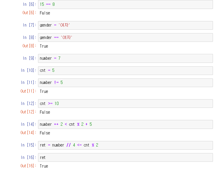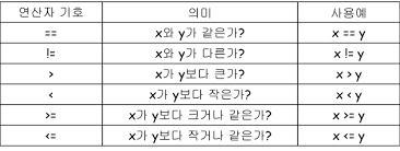 비교 연산자를 통해 bool값을 얻는다.