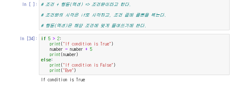 5가 2보다 크면 If condition is True 를 출력하고, 그렇지 않으면, If condition is False를 출력한다.