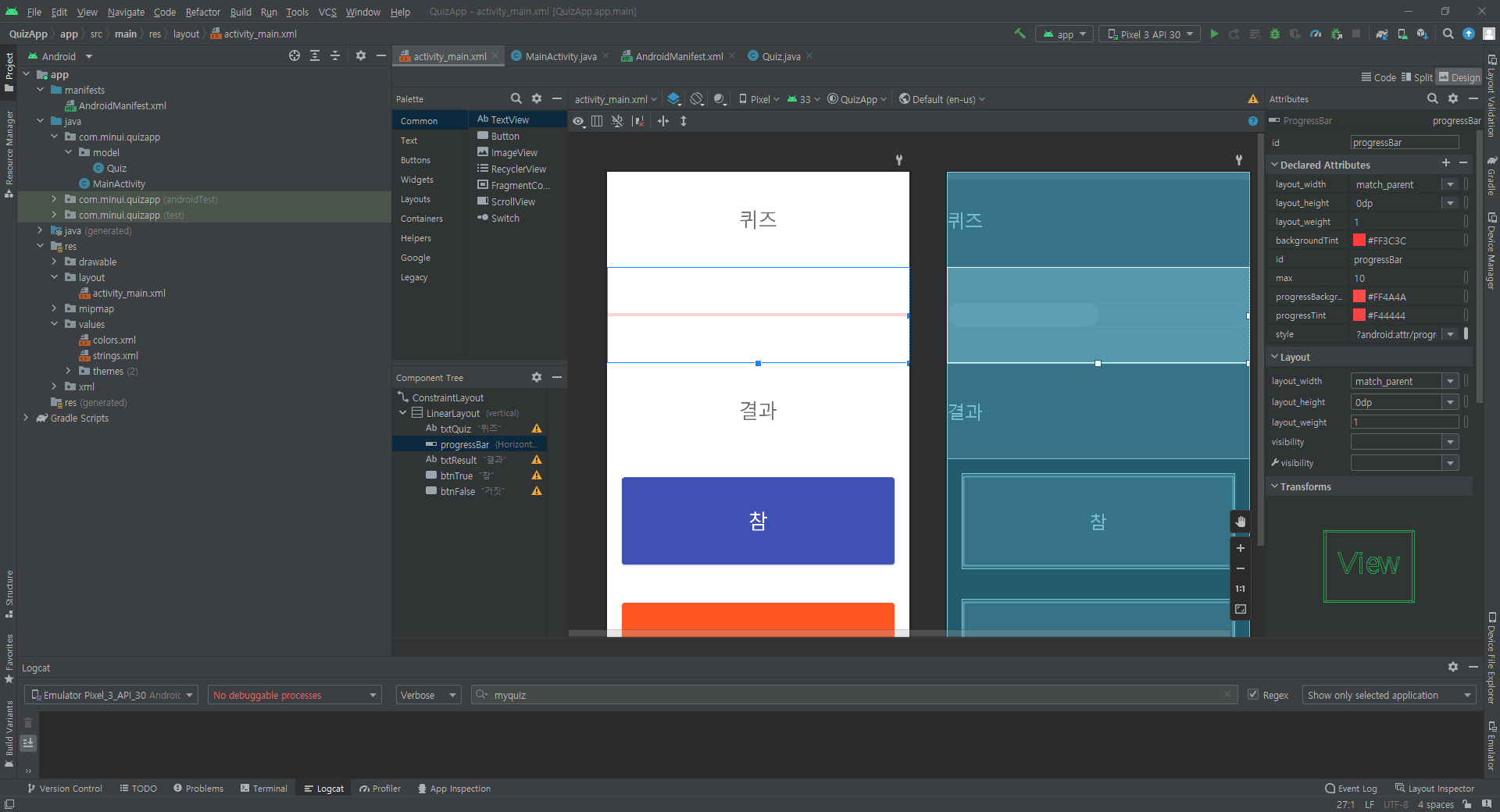 위와 같이 progressbar를 만들고 max설정해준다.