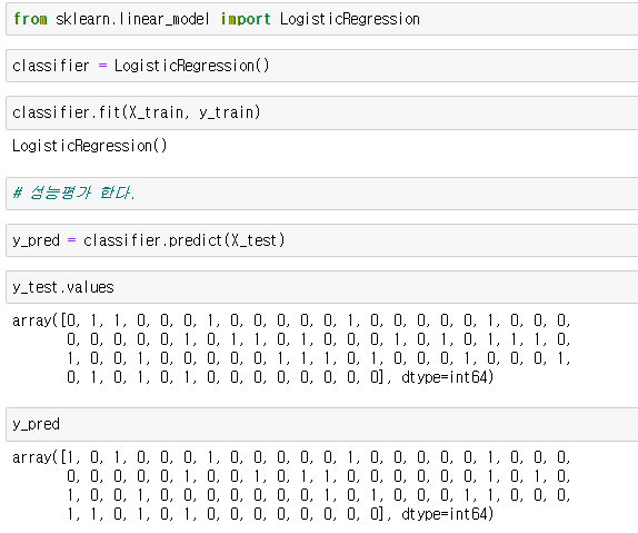 분류의 문제이므로 로지스틱 리그레션으로 모델링하고 성능평가 한다.