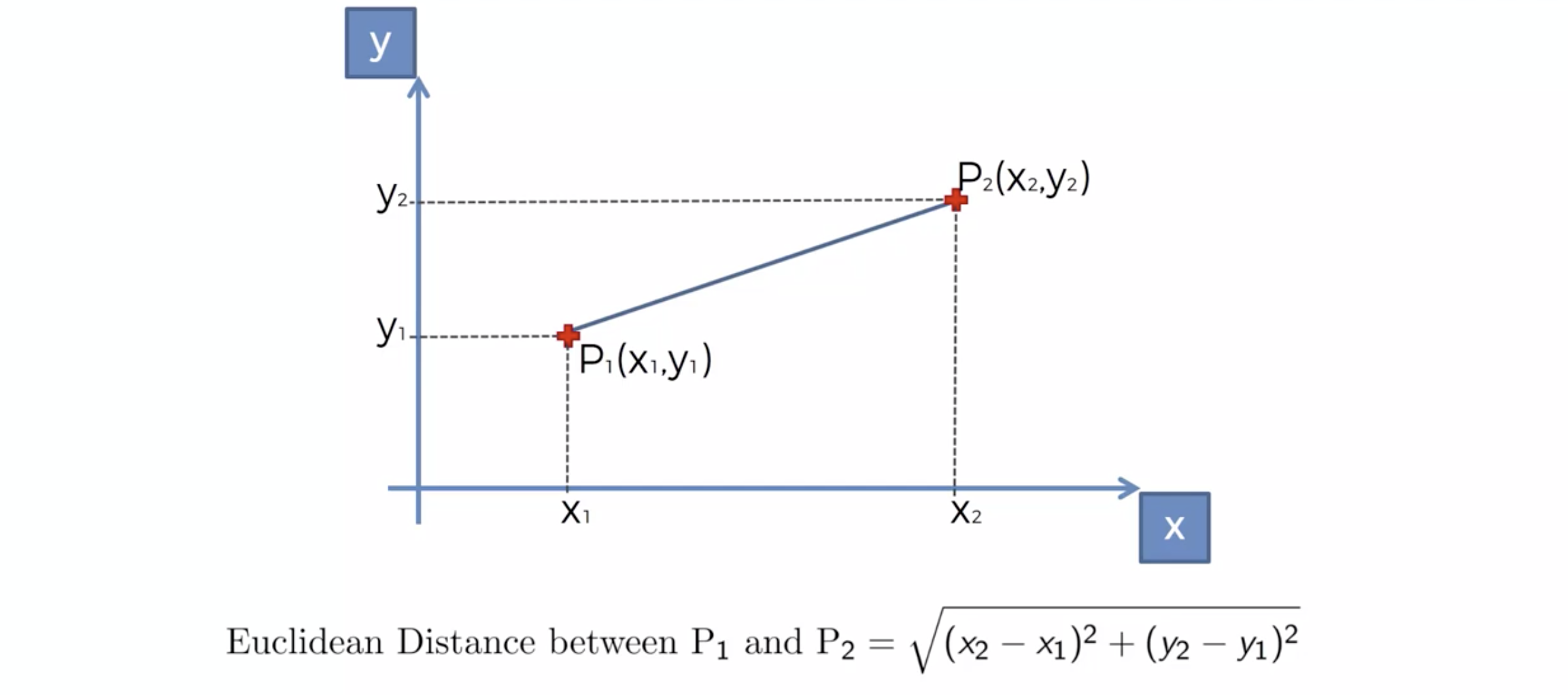 새로운 데이터가 발생 시, Euclidean distance에 의해서, 가장 가까운 k개의 이웃을 택한다.