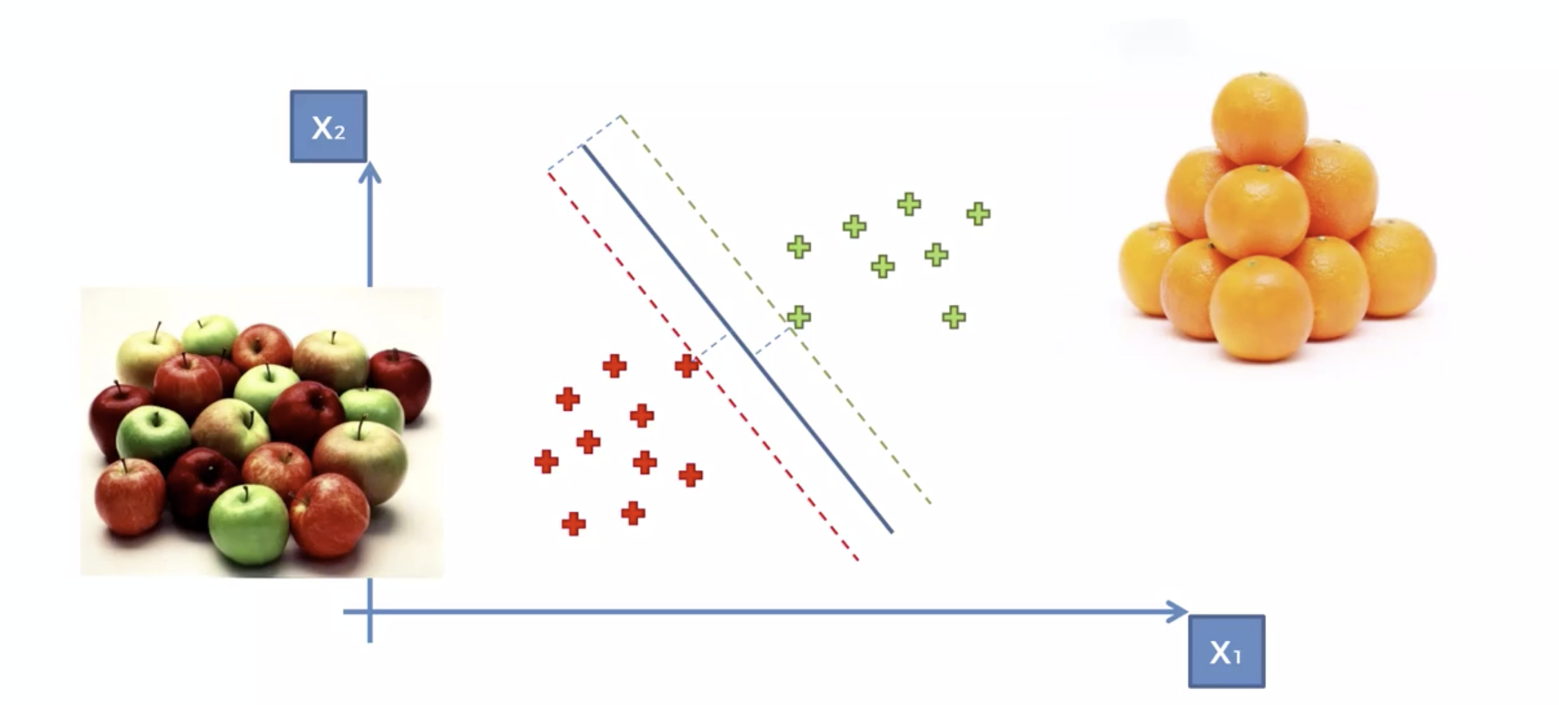 사과인지 오렌지인지 분석하는 문제에서 일반적인 사과와 오렌지들은, classifier에서 멀리 분포한다.