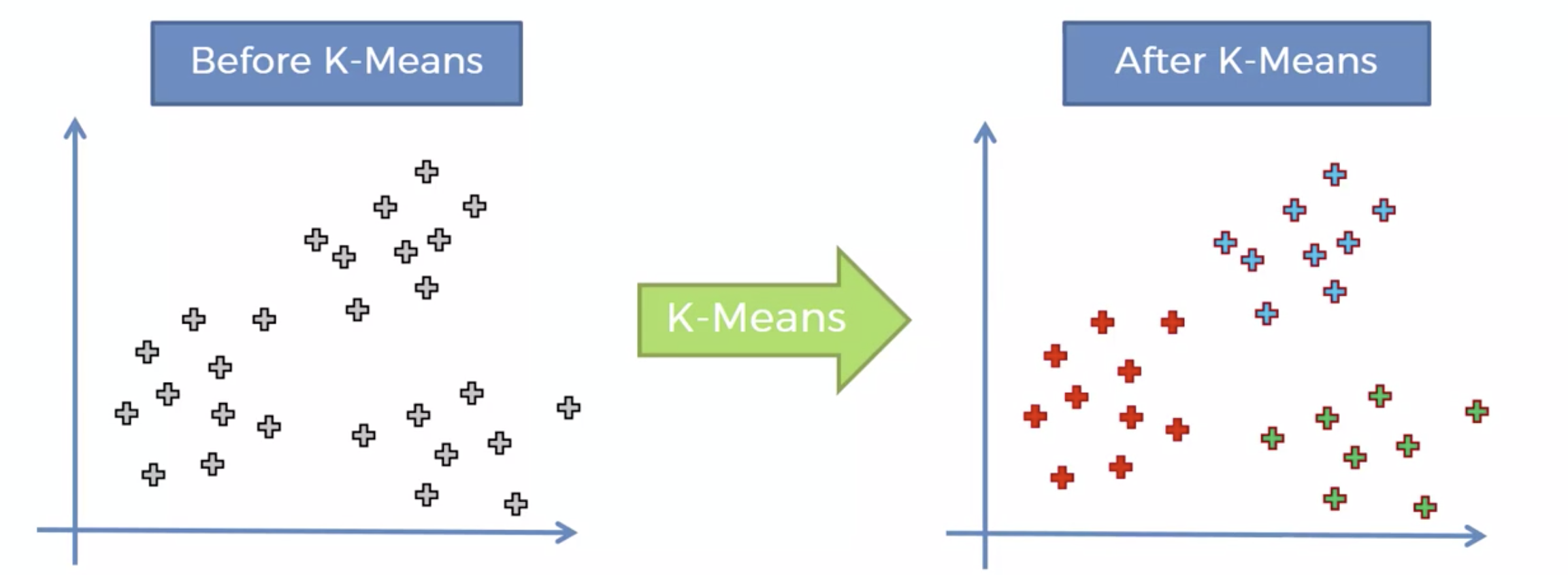 k 개의 그룹을 만든다. 즉, 비슷한 특징을 갖는 것들끼리 묶는것, 다음을 두개, 세개, 네개 그룹 등등 원하는 그룹으로 만들 수 있다.