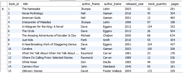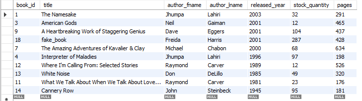 위는 예제에 쓸 books 테이블이다.