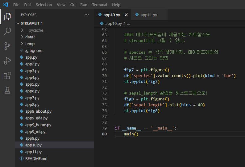 streamlit을 실행하고 싶으면 streamlit run 파일이름 을 입력해준다.
