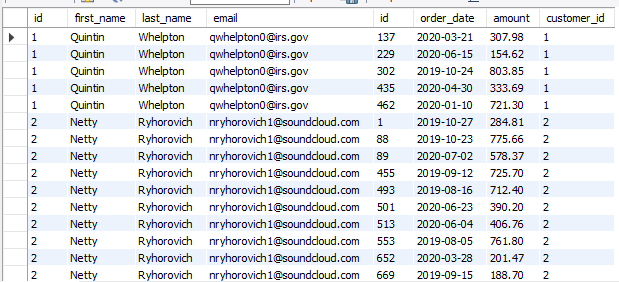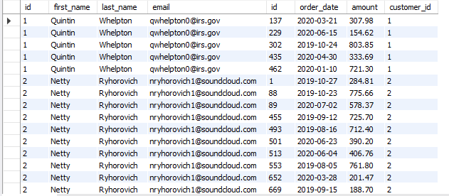 100명의 고객과 700개의 주문으로 이루어진 두 개의 테이블이 있다.
