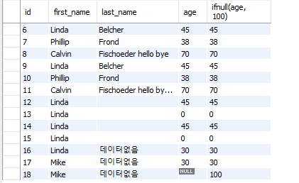 ifnull함수 컬럼의 null값을 다른 값으로 변경할 때 쓴다.