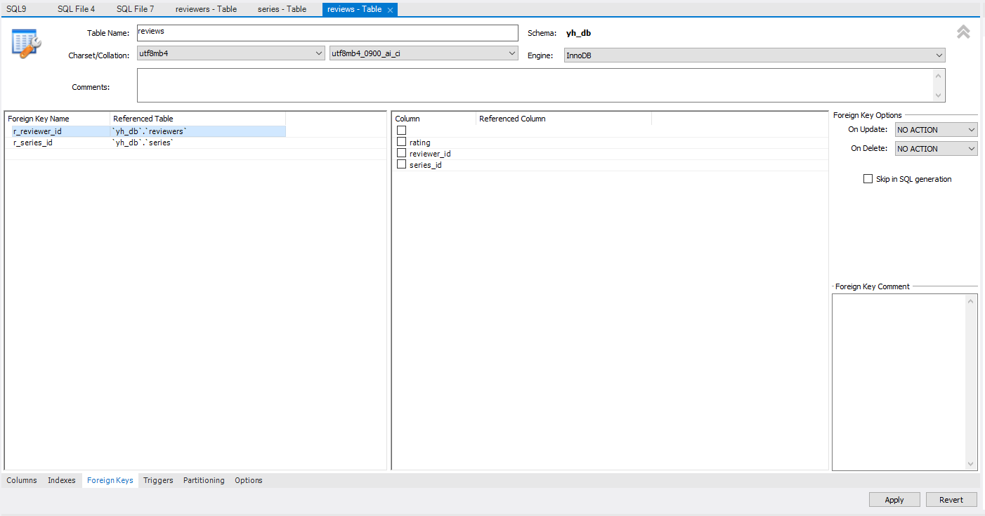 reviews라는 테이블에 reviewers와 series의 id를 참조하는 foreign key를 만든다.