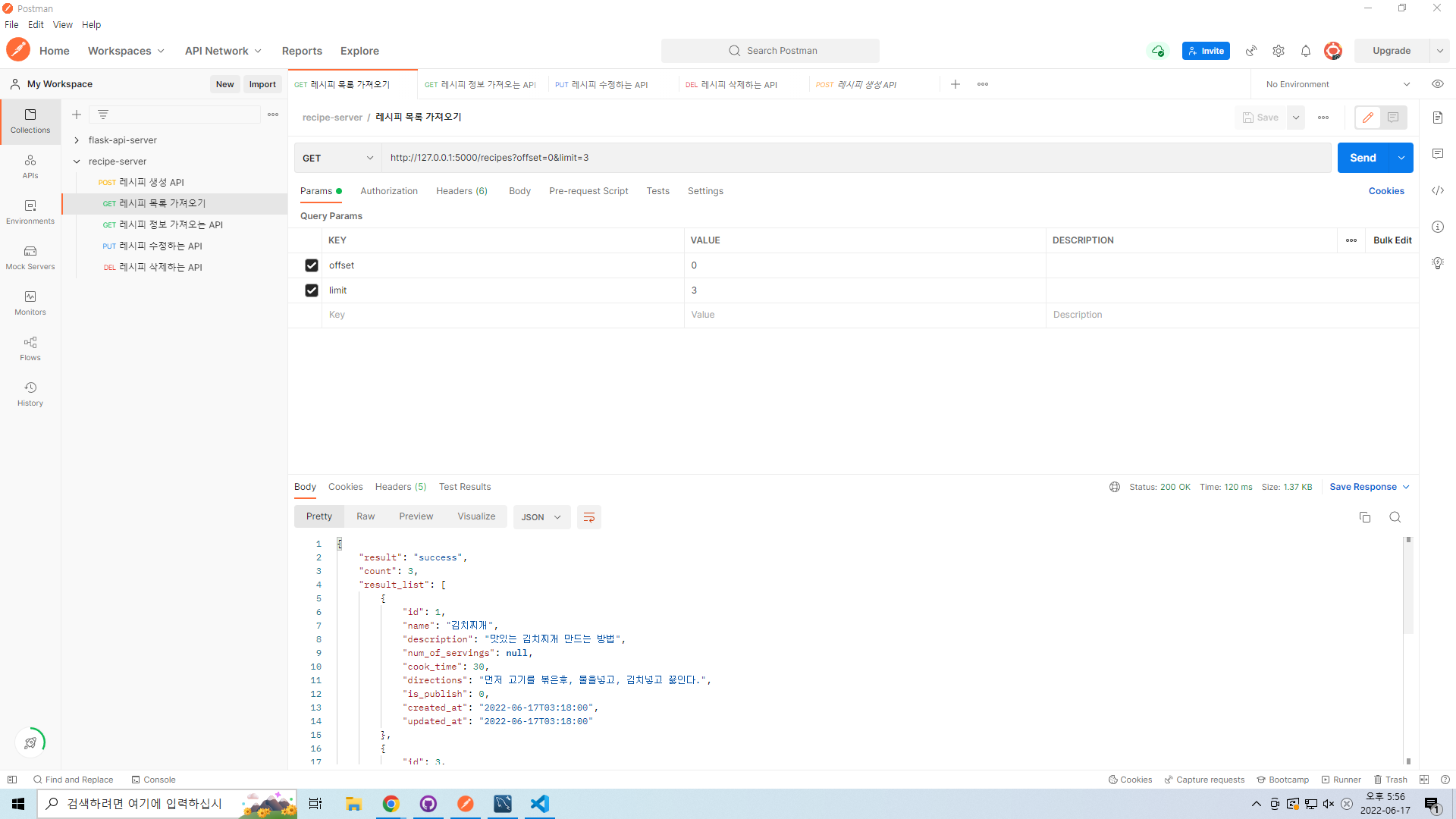 플라스크를 import하고 기본 구조 작성뒤 경로와 리소스를 연결한다.