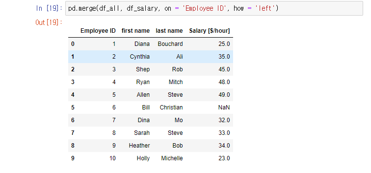 'Employee ID' 를 연결고리로 합친다.