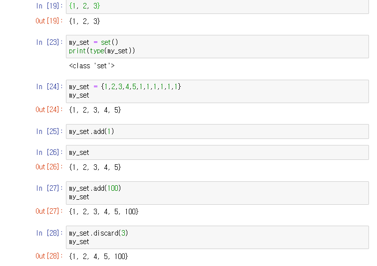 - set은 중괄호 { } 로 정의합니다.