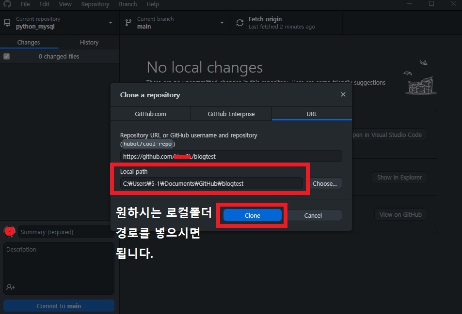 3번은 code를 누르고 https 복사해주고 git clone 주소 명령어를 입력해준다.