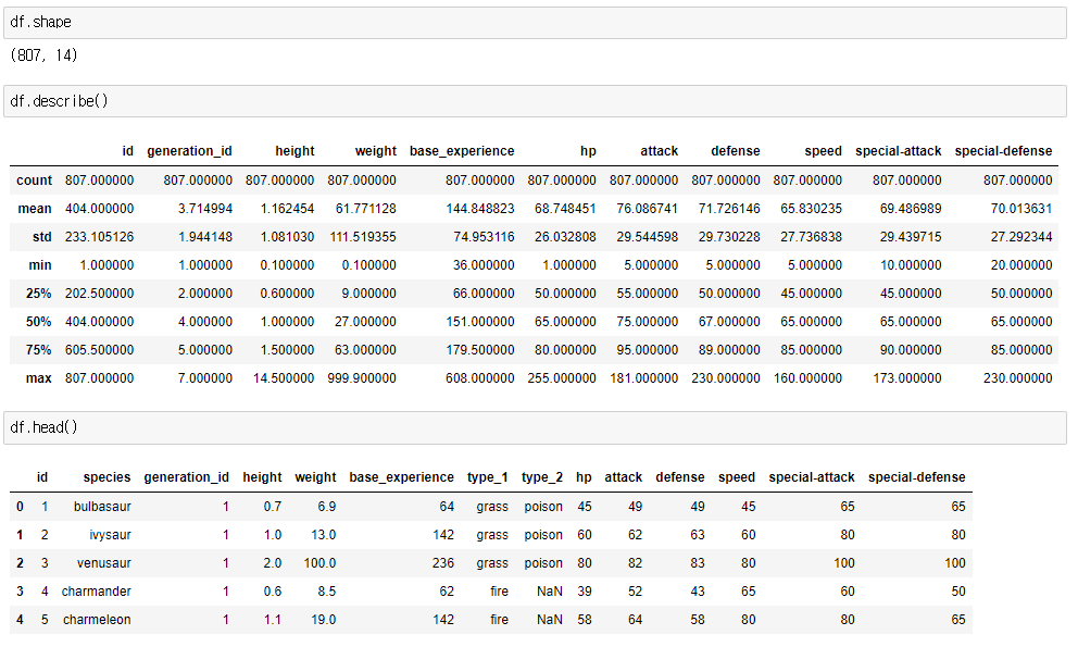 기본적인 라이브러리를 import하고 csv파일을 pd.read_csv()로 읽어와 df라는 변수에 저장했다.