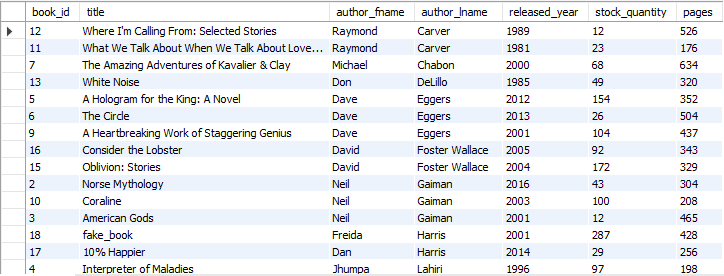 ORDER BY author_lname ASC, author_fname DESC;
