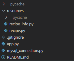 app.py파일이 실행파일이고 resources폴더안에 recipe.py와 recipe_info.py파일이 들어있다.