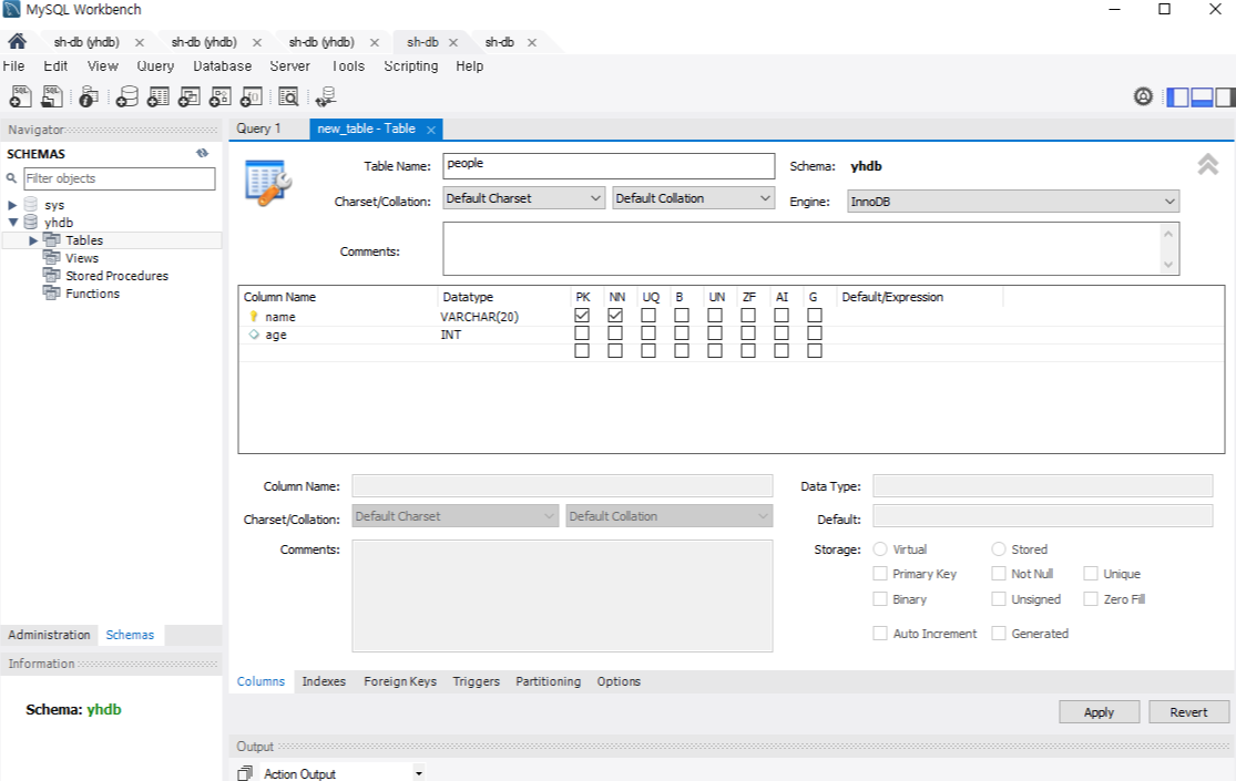 Table Name에는 원하는 이름을 적어주고 Column Name과 Datatype을 정해준다.