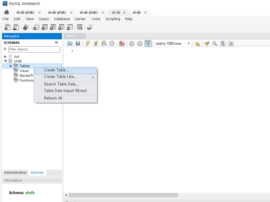위 두가지 방법중 하나로 테이블을 만들면 된다.