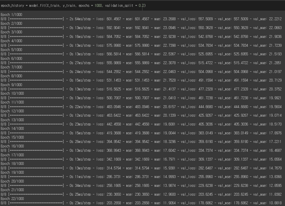 epoch_history = model.fit(X_train, y_train, epochs = 1000, validation_split = 0.2)